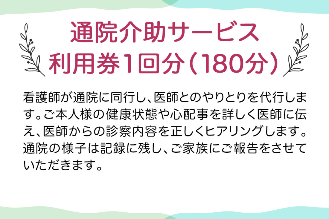 ★大阪府守口市限定★通院介助チケット(180分)|通院介助 看護師 付き添い チケット サービス利用券 利用券 [2434]