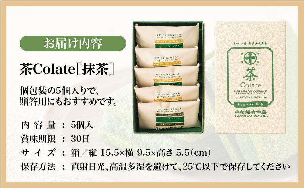 【中村藤吉本店】茶Colate[抹茶](5個入)[ 京都 スイーツ クッキー おいしい 人気 おすすめ お取り寄せ お菓子 和菓子 ] 261009_A-VK001