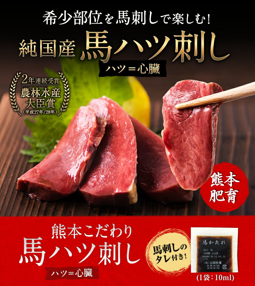 【ふるさと納税】馬ハツ刺し ブロック 50g×6ブロック 300g 馬ハツ(心臓) 国産 熊本肥育 冷凍 生食用 たれ付き(10ml×3袋) 肉 馬刺し 馬肉 絶品 心臓 牛肉よりヘルシー 馬肉 予約 小分け 熊本県玉東町《2026年6月中旬-9月中旬頃出荷予定》送料無料