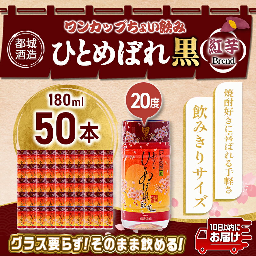 【ふるさと納税】ワンカップちょい飲み♪ひとめぼれ黒紅芋(20度)180ml×50本 ≪みやこんじょ特急便≫ - ひとめぼれ黒紅芋 20度 180ml×50本 いも焼酎 焼酎 都城酒造 ワンカップ 送料無料 22-2207【宮崎県都城市は2年連続ふるさと納税日本一!】