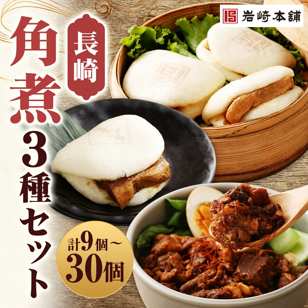 - 【ふるさと納税】【7営業日以内に発送予定】〈選べる内容量〉長崎角煮まんじゅう・大とろ角煮まんじゅう・長崎角煮まぶし 計9個/計30個 3種類 角煮まんじゅう 角煮まん 角煮まぶし 角煮 豚角煮 豚の角煮 豚肉 卓袱 卓袱料理 中華 セット 詰合せ 冷凍 長崎県 時津町 送料無料