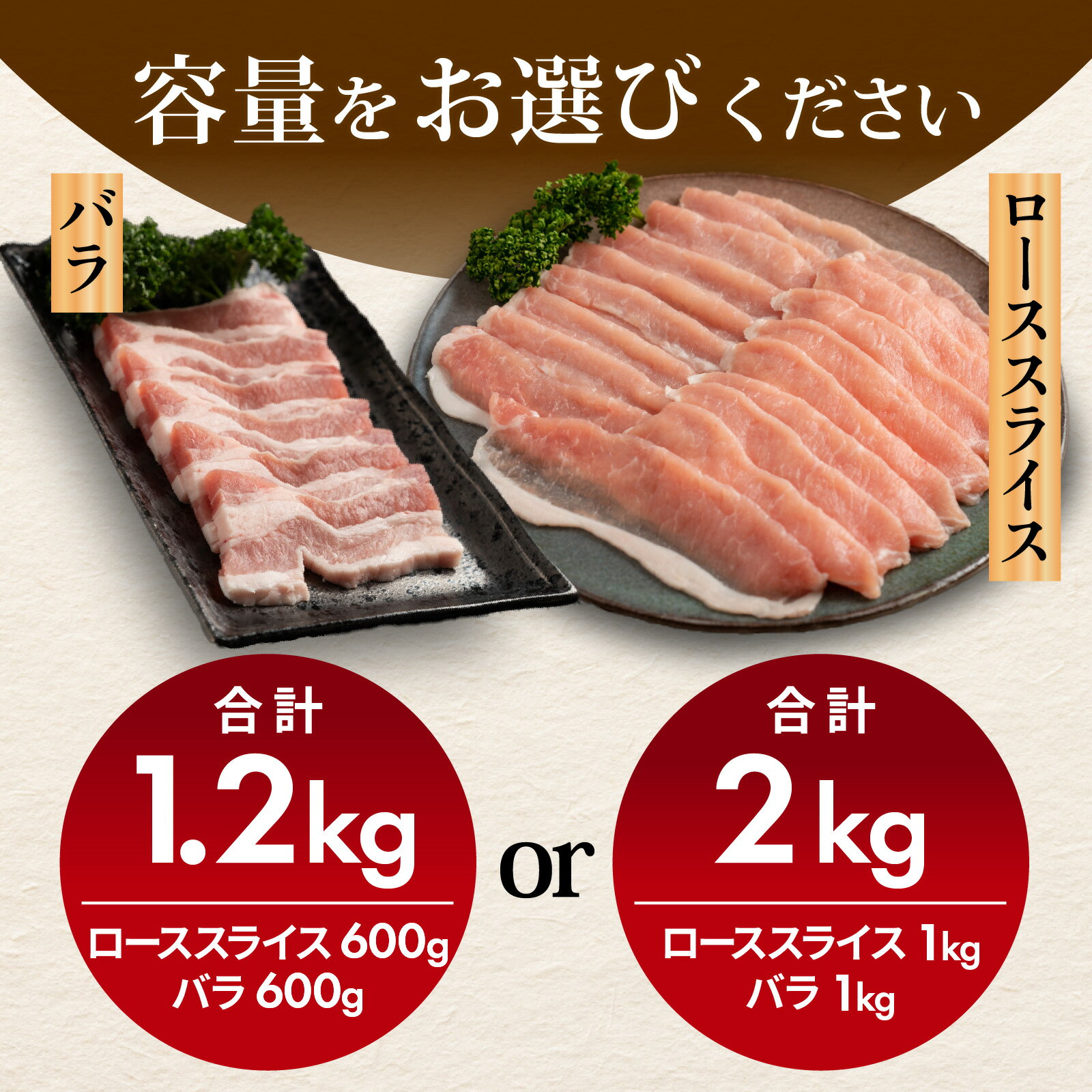 - 【ふるさと納税】【選べる容量】プレミアム能登豚「豚輝」焼肉用 2種セット 計1.2kg~2kg |お肉 豚肉 1.2キロ 2キロ ブランド豚 バラ肉 ロース スライス やき肉 焼き肉 BBQ 国産 能登豚 トンキー
