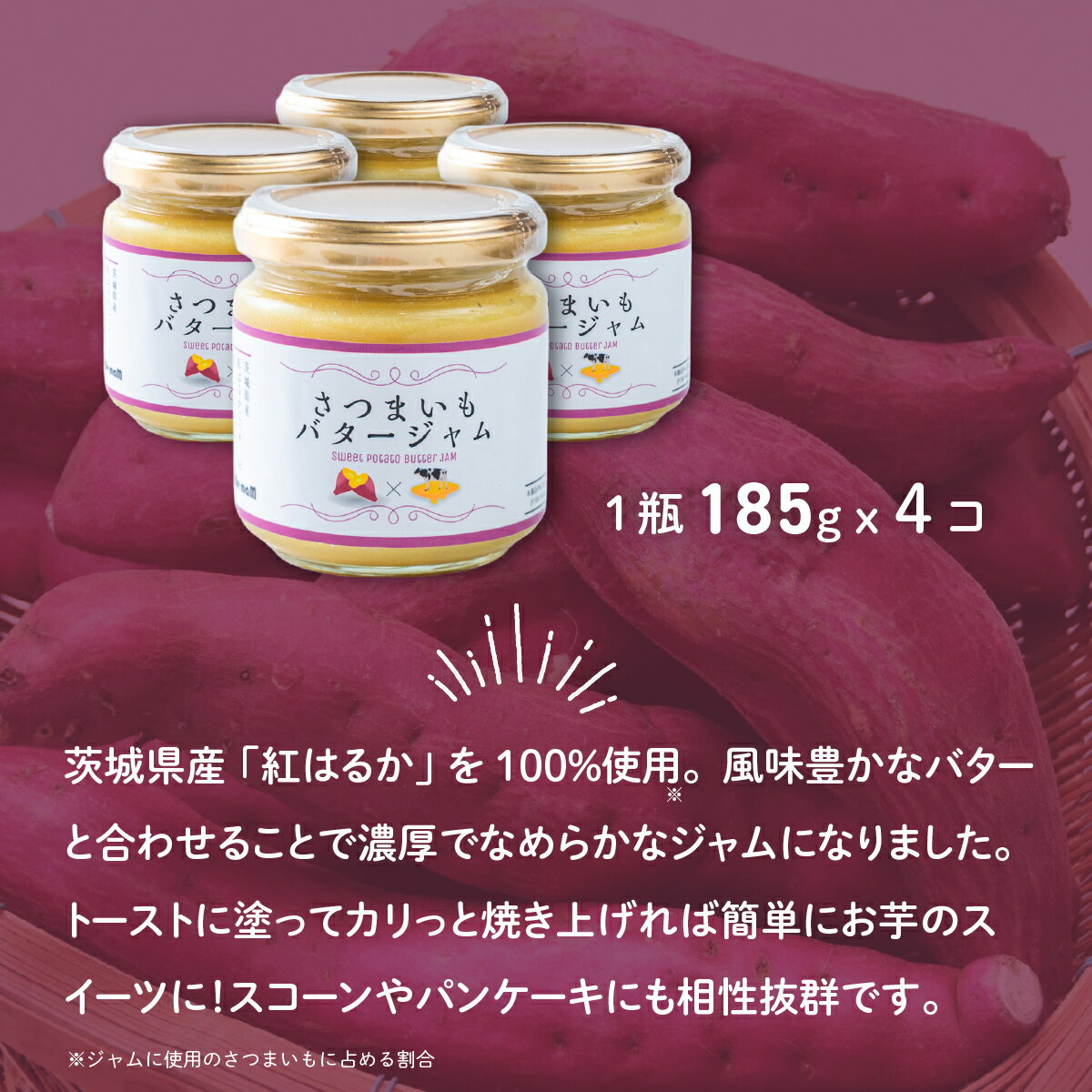 【ふるさと納税】 さつまいもバタージャム 4瓶(185g x 4個) 茨城県産 紅はるか使用【さつまいも ジャム バター 朝食 デザート じゃむ 5000円 ~ 7000円】