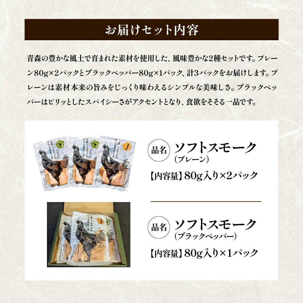 【ふるさと納税】青森県産地鶏 青森シャモロック ソフトスモーク2種 3パックセット 地鶏 鶏 肉 プレーン ブラックペッパー おつまみ 贈り物 贈答 ギフト プレゼント (株)グローバルフィールド 青森県 七戸町 【02402-0494】