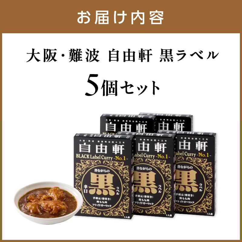 大阪・難波 自由軒 黒ラベル 5個セット カレー レトルトカレー レトルトカレーセット こだわりカレー 辛口カレー オリジナルカレー スパイスカレー 人気カレー 大人気カレー レトルト食品 常温保存【002E-009】