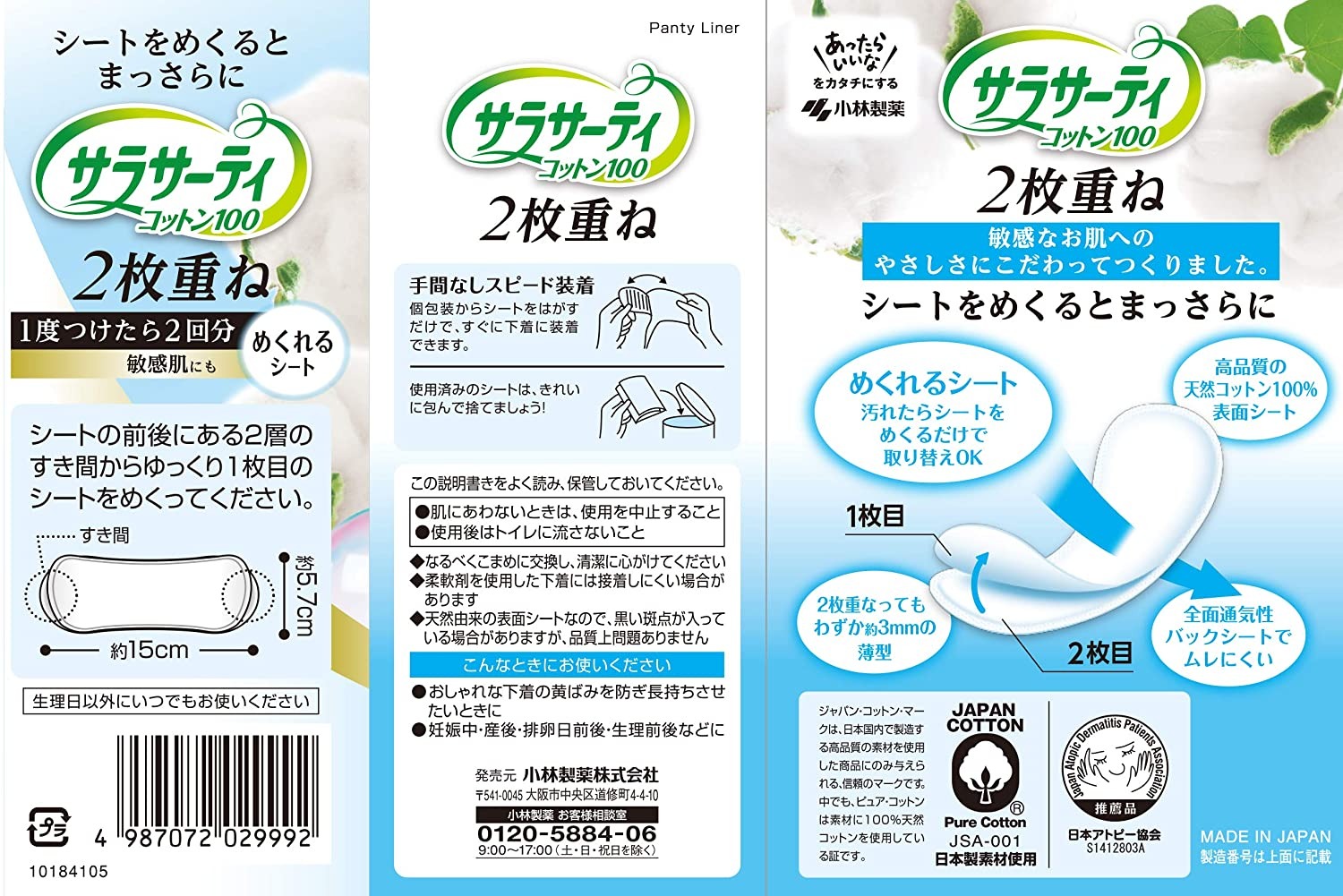 - サラサーティコットン100 2枚重ねのめくれるシート 72枚(36組×2枚)×6袋セット (フレグランスソープの香り) 生理用品 日用品【愛媛小林製薬】