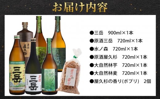 - 屋久島焼酎飲み比べ 6種・6本セット+屋久杉の香り(ポプリ) 2個