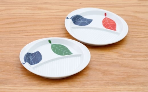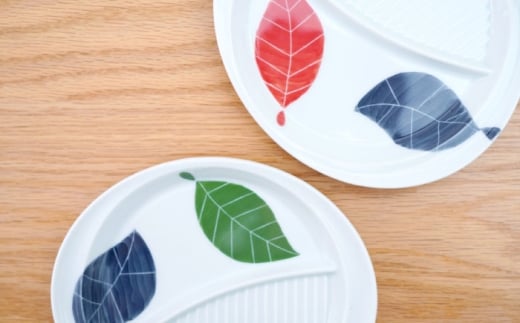 - 【波佐見焼】仕切り皿 リーフ 2色セット【団陶器】 [PB229]
