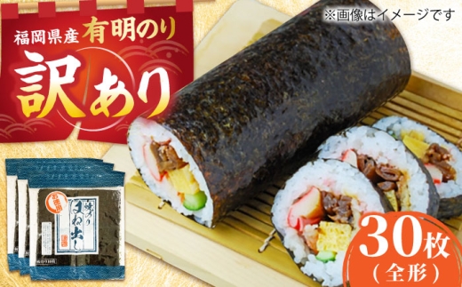 訳あり キズ海苔 全型 30枚 福岡県産 有明のり 吉富町/株式会社ゼロプラス [BGAA010] 海苔 訳あり わけあり 焼海苔 焼き海苔 のり ノリ 全形 有明海苔 手巻き海苔 手巻きのり 国産 わけあり 福岡県 全型
