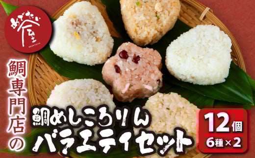 鯛めしころりん6種×2(計12個)の 本格 鯛めし おにぎり バラエティ セット 鯛めし おむすび 個包装 冷凍 レンジ 簡単 祝辞 正月 おやつ 厳選 鯛 タイ たい コシヒカリ もち米 赤飯 ゆず バター バジル もち麦 みそ チーズ 唐辛子 虎の尾 満足 専門店 めでたい屋 尾鷲市 ふるさと納税 ME-91