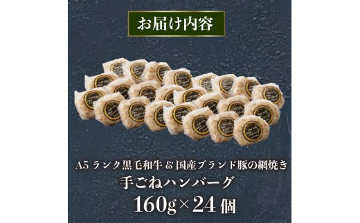 - A5ランク 黒毛和牛 ブランド豚 網巻き 手ごね ハンバーグ 160g×24個 セット 個包装 冷凍 国産 牛肉 豚肉 小分け 合い挽きハンバーグ 高級 肉 惣菜 おかず 合挽き 和牛 ジューシー お取り寄せ グルメ ごちそう 贈り物 ギフト ミートファクトリー 静岡県 三島市