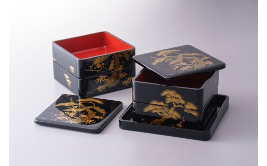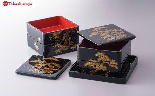 - 輪島塗〈塩安漆器工房〉大端 楽寛 四段重 黒呂色「蓬莱」[髙島屋選定品]