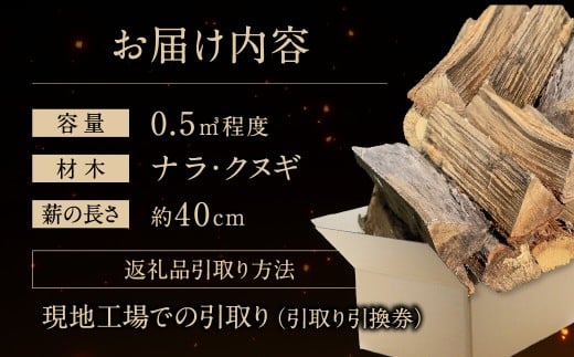 - びわこの薪(ナラ・クヌギ薪×0.5㎥・引き取り引換券) 株式会社ジンジ 滋賀県 東近江市 E-E20 薪 びわこの薪 ナラ薪 クヌギ薪 薪ストーブ 暖炉 キャンプ 焚き火 薪割り 滋賀 東近江市 燃料