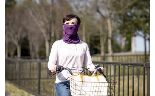 - 【パープル】天然の美容繊維 UV対策シルクガーゼマスクネックウォーマー H-NW1901