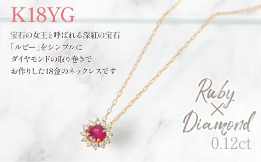 K18 イエローゴールド ルビーダイヤ取り巻きネックレス ラウンド 管理番号255299 218-258-ru