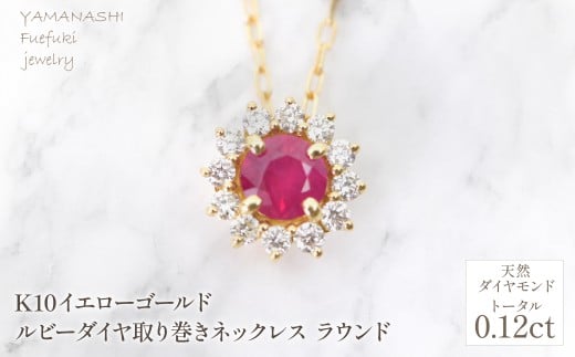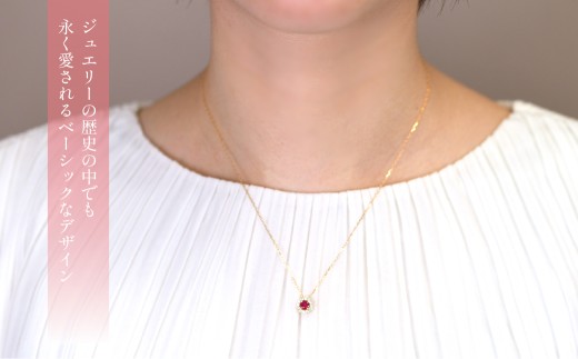 - K18 イエローゴールド ルビーダイヤ取り巻きネックレス ラウンド 管理番号255299 218-258-ru