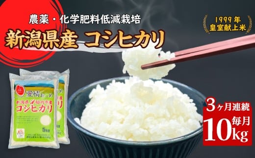 16-K103【3ヶ月連続お届け】新潟県胎内市産コシヒカリ10kg(5kg×2袋)