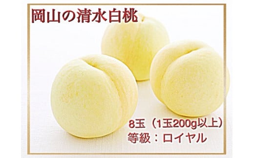 Fp-1【令和8年発送・先行予約】岡山県産 清水白桃(1玉200g以上)8玉 等級:ロイヤル 化粧箱入り
