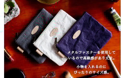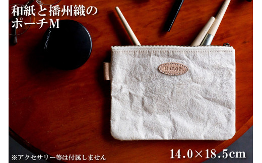 - 和紙と播州織のポーチM(ホワイト) HALOP ハロップ 多可町 杉原紙 [1137]