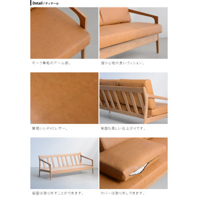 ウッドフレームソファ パイク3P オーク無垢材(福岡県)【1356756】