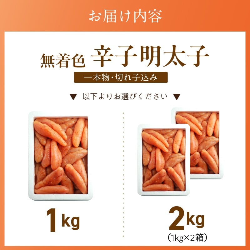 - 【訳あり品】「無着色辛子明太子」(一本物・切れ子込み)_訳あり品 無着色 辛子明太子 一本物 切れ子 込み 選べる 内容量 1kg 2kg さまざま 形 不揃い 色 破れ 明太子 少し辛め 原料 素材 厳選 魚介類 海鮮 魚卵 冷凍 おかず ごはんのお供 酒の肴 おつまみ お取り寄せ 福岡県 久留米市 送料無料_Cs131-1-sku