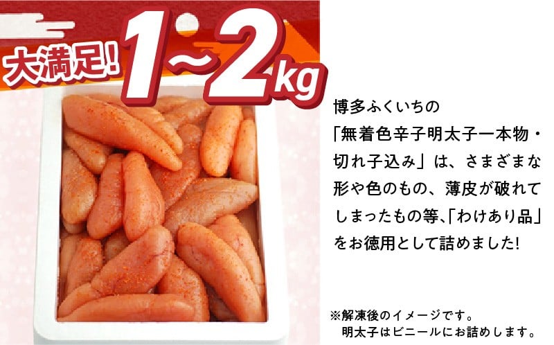 【訳あり品】「無着色辛子明太子」(一本物・切れ子込み)_訳あり品 無着色 辛子明太子 一本物 切れ子 込み 選べる 内容量 1kg 2kg さまざま 形 不揃い 色 破れ 明太子 少し辛め 原料 素材 厳選 魚介類 海鮮 魚卵 冷凍 おかず ごはんのお供 酒の肴 おつまみ お取り寄せ 福岡県 久留米市 送料無料_Cs131-1-sku