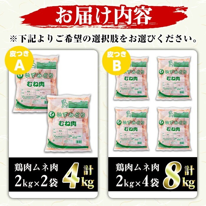 - <内容量が選べる!>鹿児島県産!鶏肉ムネ肉(計4~8kg)国産 胸肉 むね肉 とりにく 唐揚げ から揚げ ソテー 鶏料理 冷凍【スーパーよしだ】