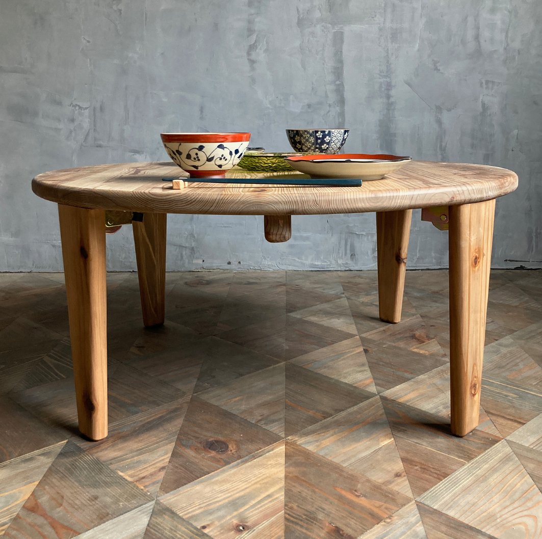ちゃぶ台 直径72cm 癒やし 無垢材 ダイニング インテリア 木製 ハンドメイド 家具 カグ かぐ テーブル てーぶる デスク 机 おしゃれ かわいい 杉 ビンテージ 椅子 日用品 リビング キッチン 市場家具 いちば イチバ 85ファニチャー 国産 神奈川 湘南 藤沢
