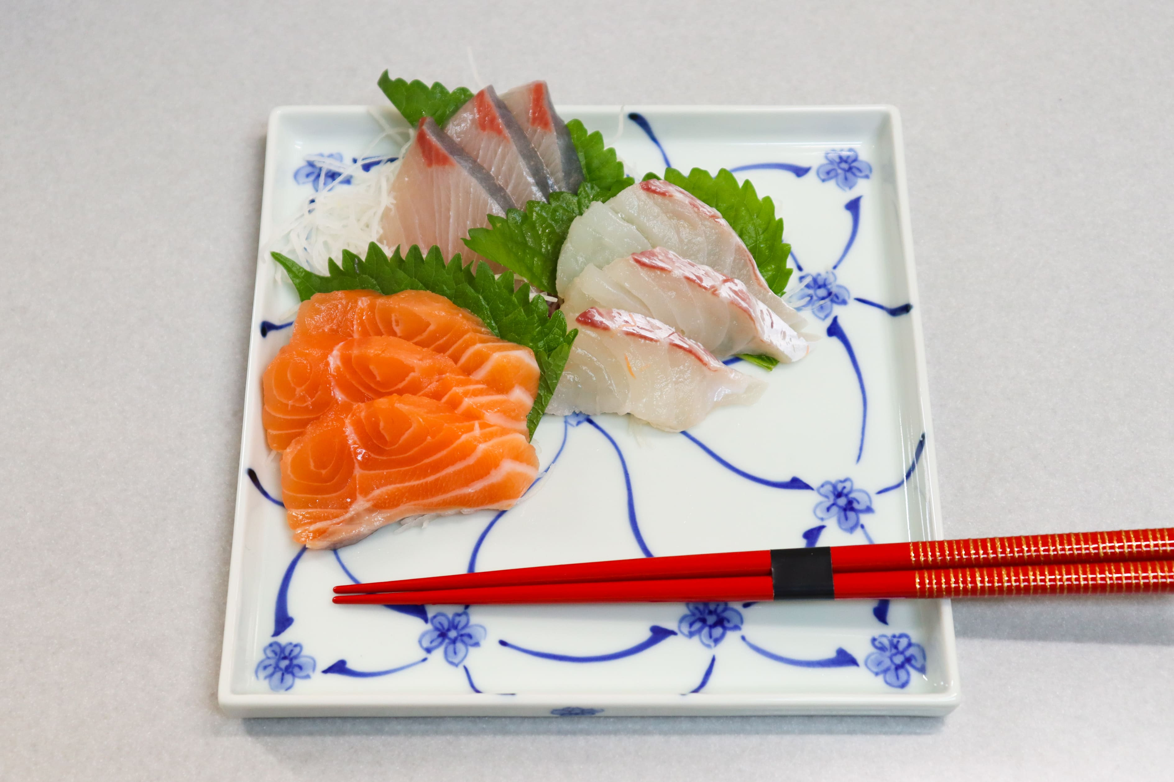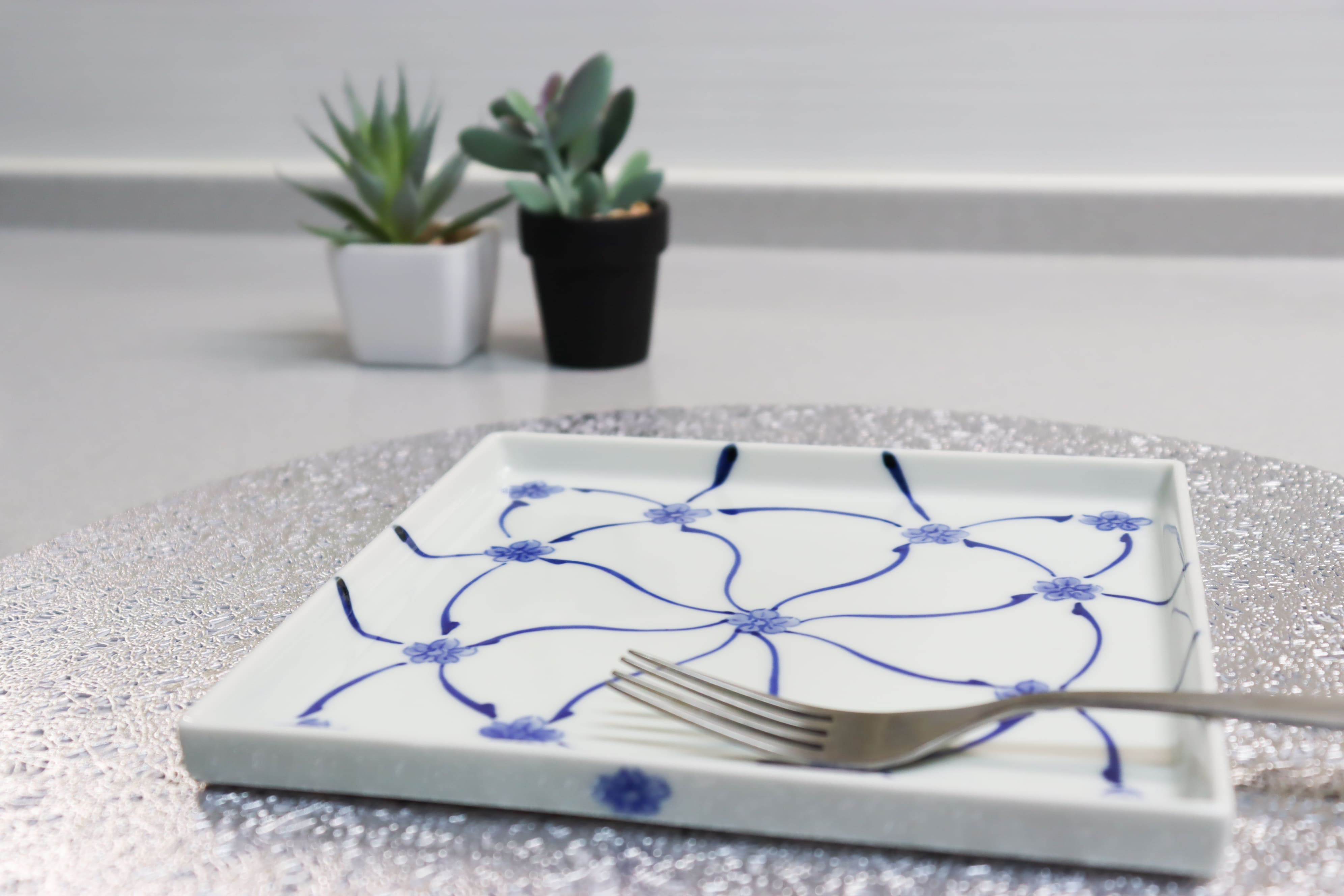 有田焼 正角切立皿 角18cm 染付梅小紋 【大慶】 皿 正方形 食器 磁器 A12-160