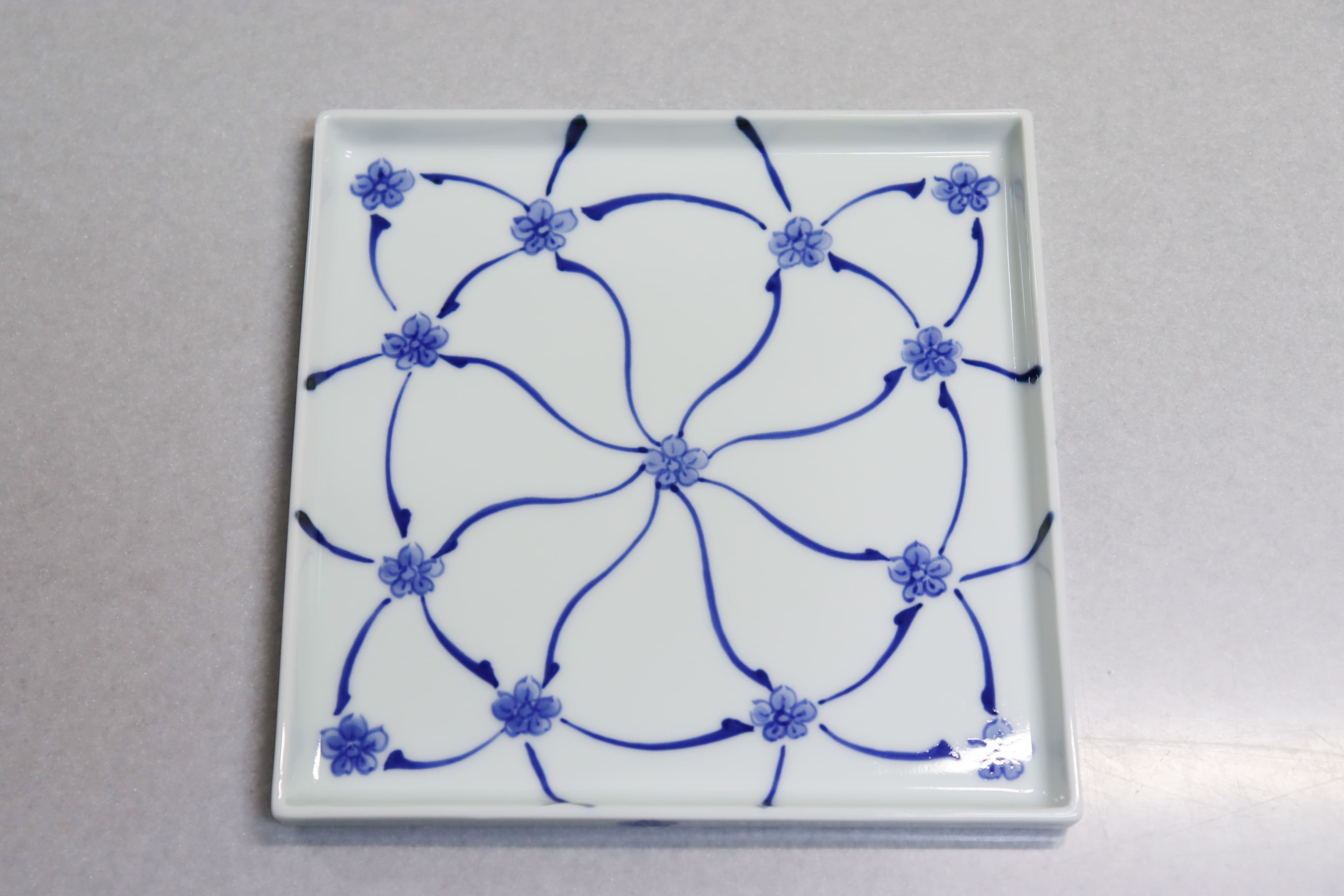 - 有田焼 正角切立皿 角18cm 染付梅小紋 【大慶】 皿 正方形 食器 磁器 A12-160