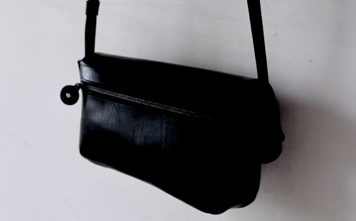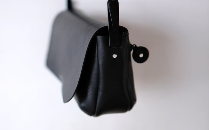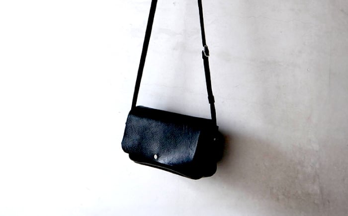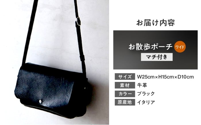 - お散歩ポーチ ワイド マチ付き 【ブラック】 本革 イタリアンレザー / 軽量 ショルダーバッグ 牛革 シンプル 小浜市 / topiv [BFAI019]