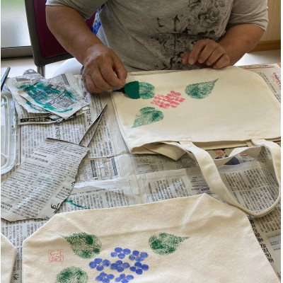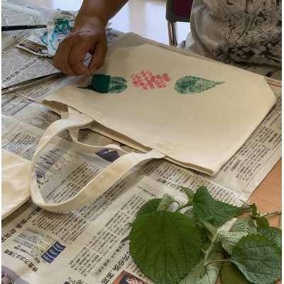 - <障がい福祉事業のために>手作りバッグ、手染め和紙等セット<たけのこ柄>【1315251】