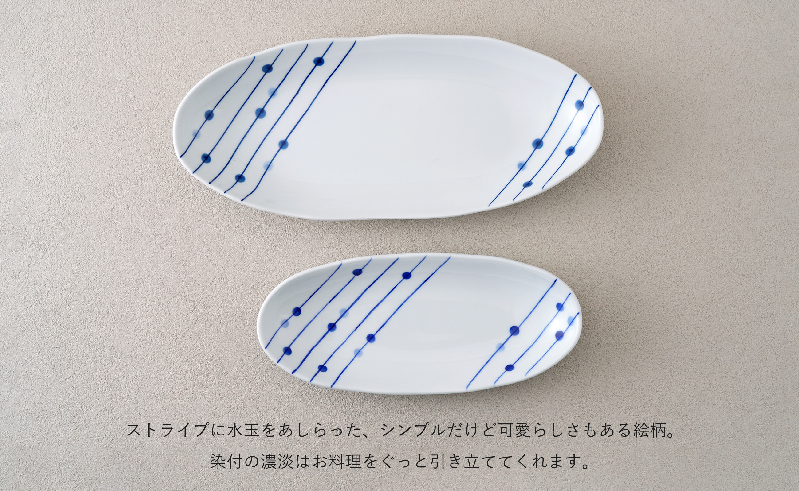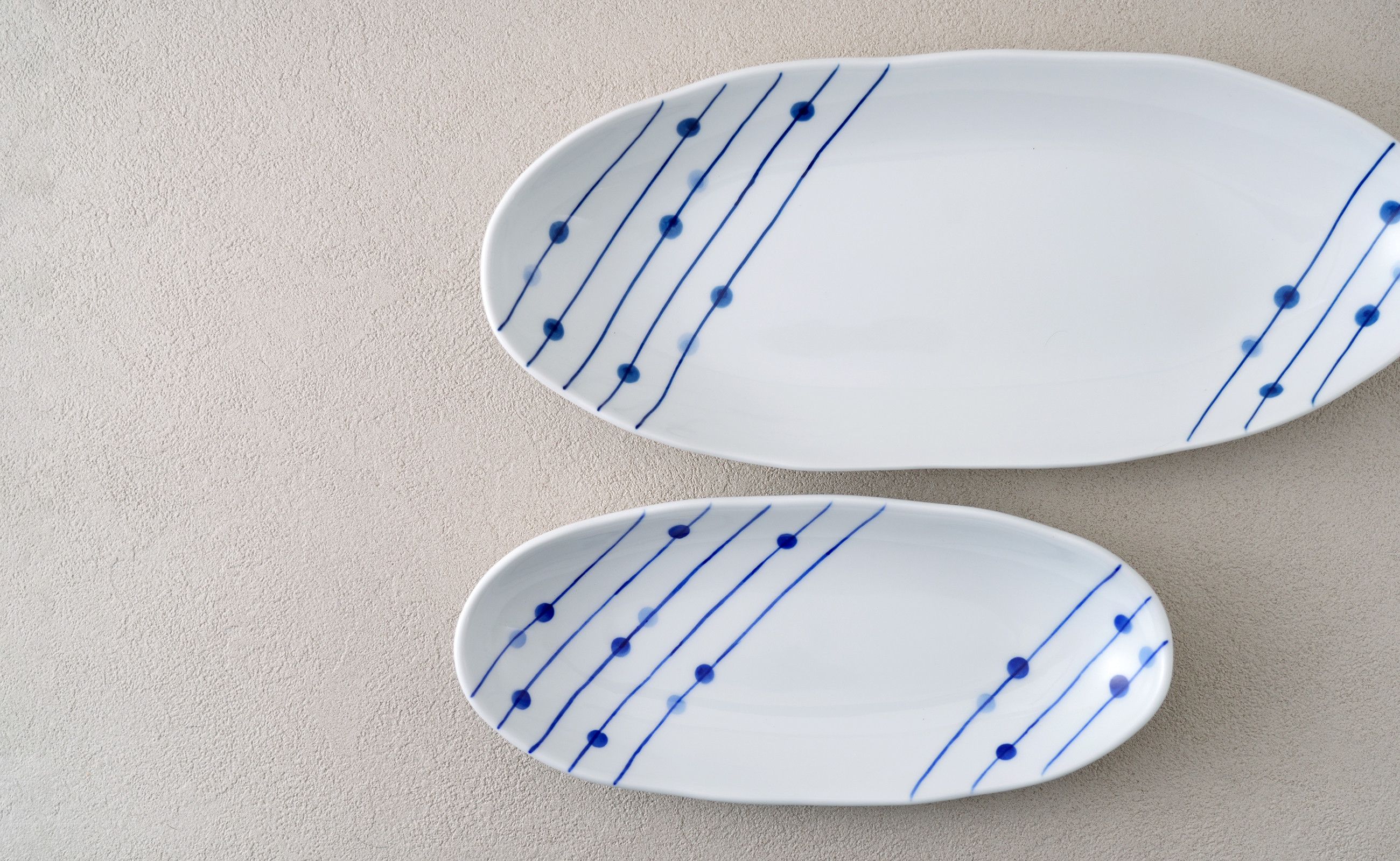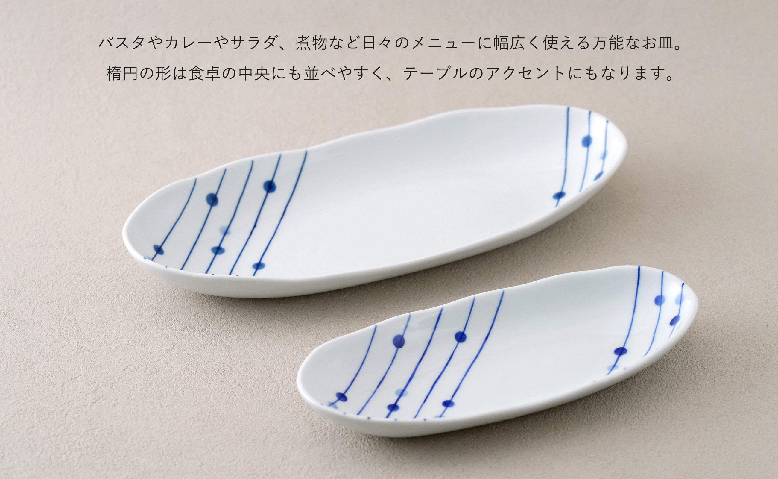 - 有田焼 染付 楕円皿 すだれ十草 大・小セット 【やきものの里】食器 器 うつわ オーバル皿 電子レンジ対応 磁器 A14-161