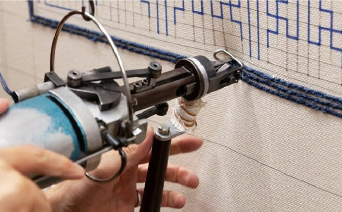 鍋島緞通 [手刺繍] 蟹牡丹縁二重雷文 灰地:C510-008