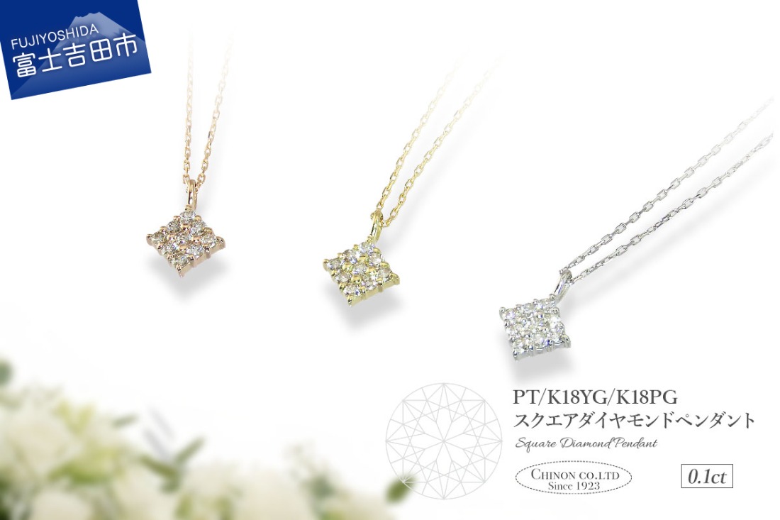 - 【選べる地金 PT(プラチナ)/K18イエローゴールド/K18ピンクゴールド】ダイヤモンドペンダント(スクエア) PT MJ-1146/K18YG MJ-1147/K18PG MJ-1148 ペンダント ダイヤモンド ジュエリー ネックレス ダイヤ アクセサリー 品質保証書付き 山梨 富士吉田