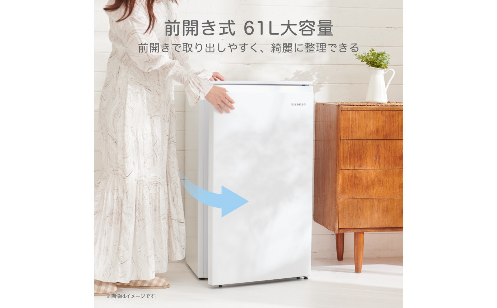 - Hisense ハイセンス 小型 冷凍庫【設置費込み】幅48cm 61L セカンド冷凍庫 直冷式 7段温度調整可能 耐熱天板 静音 前開き 1ドア HF-A60JWホワイト 人気 おすすめ 家電 送料無料 141305_KC47