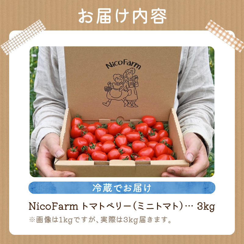 - 【先行予約:2026年7月下旬頃より発送】NicoFarm トマトベリー(ミニトマト)3Kg_Y124-0013