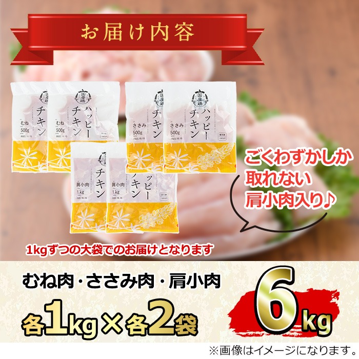【0124806a-2603】<2026年3月発送予定>国産若鶏肉ヘルシーセット(合計6kg・ムネ、ささみ、肩小肉) 鶏肉 鳥肉 とり肉 むね肉 おかず 小分け 国産【エビス】