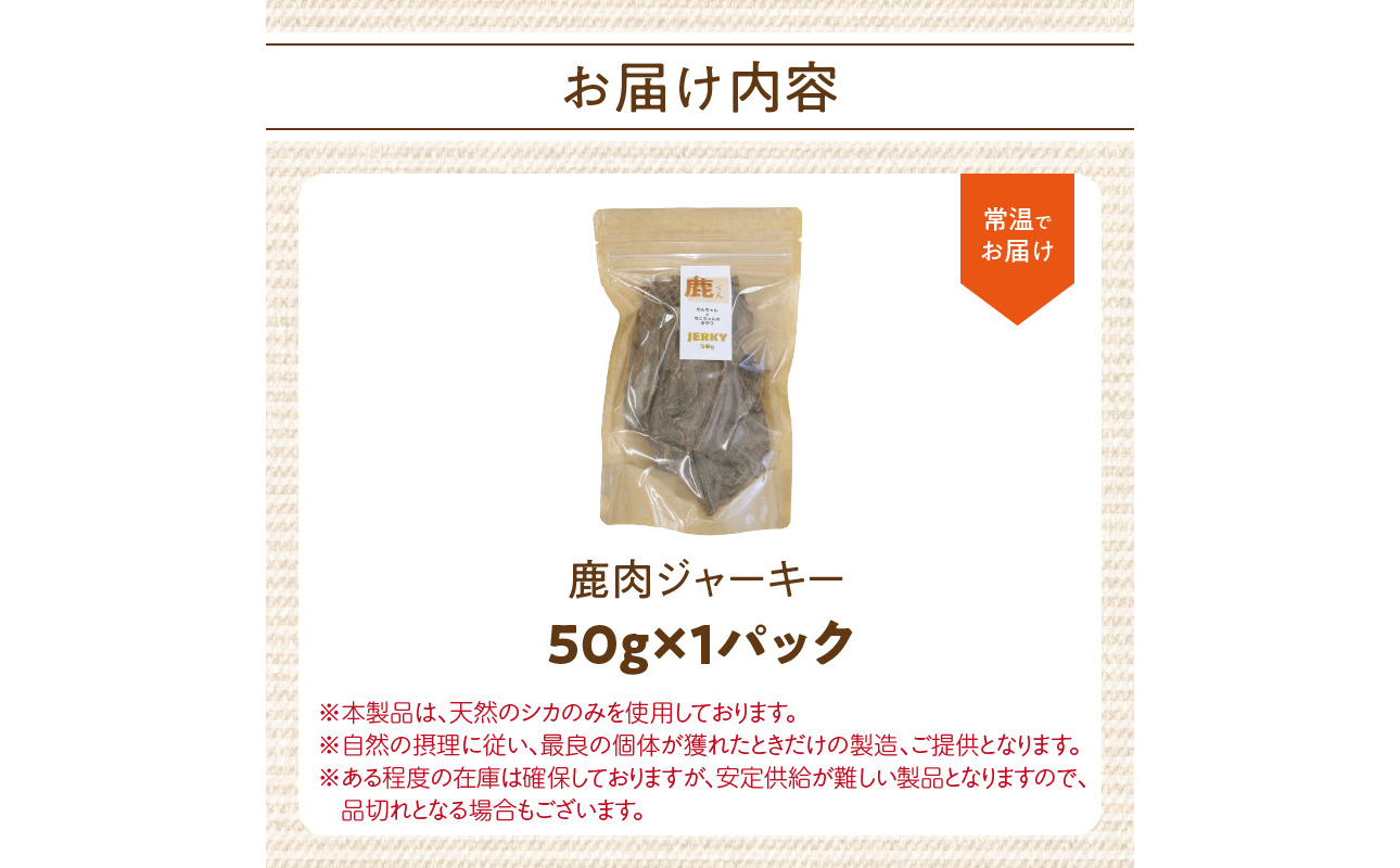 - 【R15014】【ペットフード(犬・猫用)】 鹿肉ジャーキー 50g×1パック