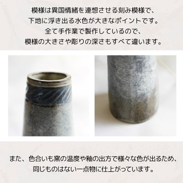 円筒花瓶刻み模様(小)【長内工房】 / 陶器 インテリア 雑貨 花