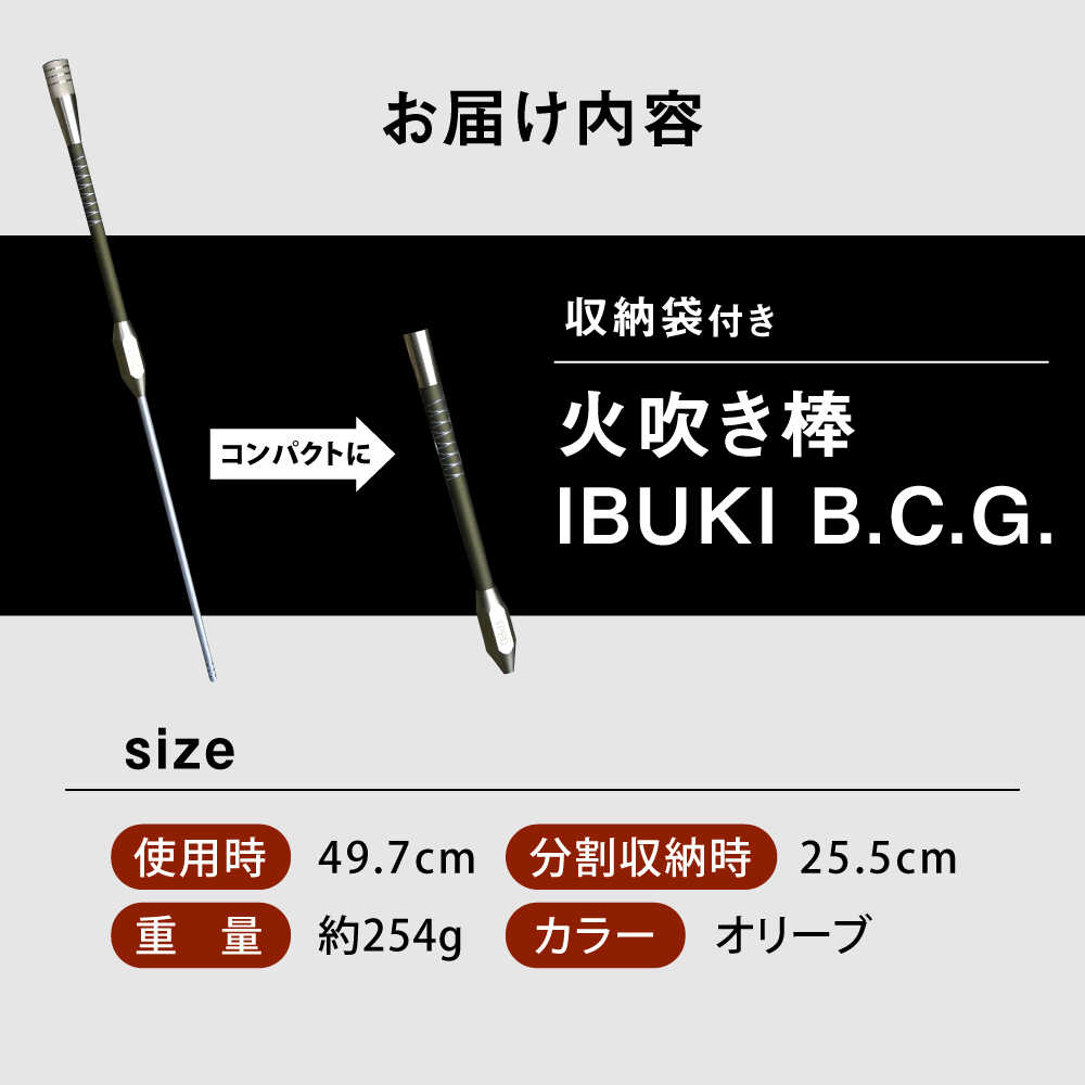 - 【ふるさと納税】《IPPOPRODUCTS》火吹き棒【IBUKI B.C.G.(イブキ ビーシージー)】 アウトドア キャンプ ソロキャンプ キャンプ用品 ギフト おすすめ 人気 ふいご 焚き火 焚火 コンパクト 軽量 おしゃれ プレゼント 日本製 広島県福山市/池田鉄工有限会社【BAEI014】