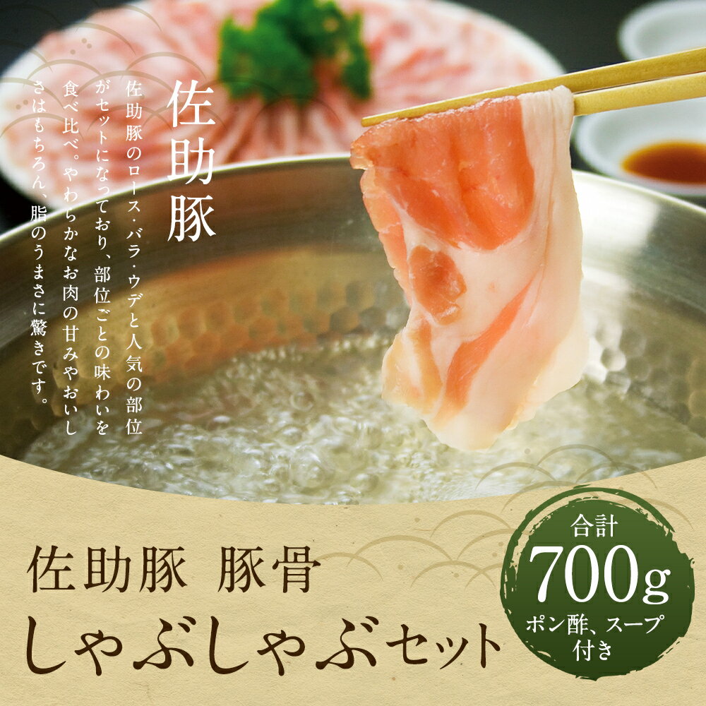 【ふるさと納税】佐助豚 豚骨しゃぶしゃぶセット 3種類 合計700g ロース バラ ウデ ポン酢付き スープ付き お肉 豚肉 食べ比べ セット 冷蔵 送料無料