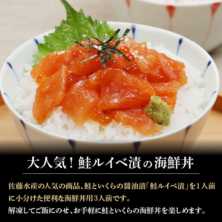 【ふるさと納税】鮭 ルイベ漬け 惣菜 <佐藤水産>【選べる】佐藤水産の海鮮丼(80g×3個入)・かに入り鮭いくら海鮮丼(FA-844)・鮭ルイベ漬(鮭といくらの醤油漬)海鮮丼)・かにと帆立入り鮭いくら海鮮丼 北海道 石狩市 かに いくら サケ