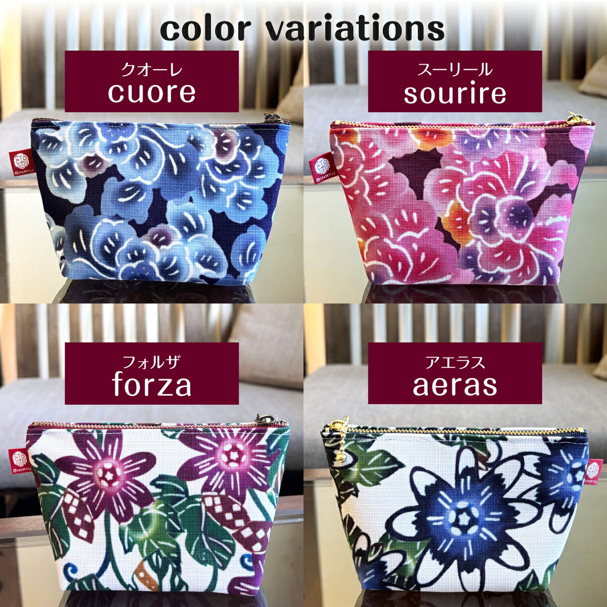 - 【ふるさと納税】 ポーチ 選べるカラー【クオーレ、スーリール、フォルザ、アエラス】 | 紅琉 BINRYU アラヤプランニング株式会社 | 伝統工芸 びんがた 紅型 | テキスタイル 花柄 柄 | マチ付き マチあり 小物入れ 化粧ポーチ コンパクト | 沖縄 宜野湾市 送料無料