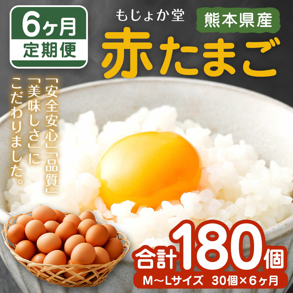 - 【ふるさと納税】【6ヵ月定期便】熊本県産 赤たまご 30個 (30個のうち3個は破損補償内)30個×6ヵ月 毎月1回 合計180個 定期便 鶏卵 M〜Lサイズ 卵 たまご 赤卵 生卵 玉子 もじょか堂 国産 送料無料