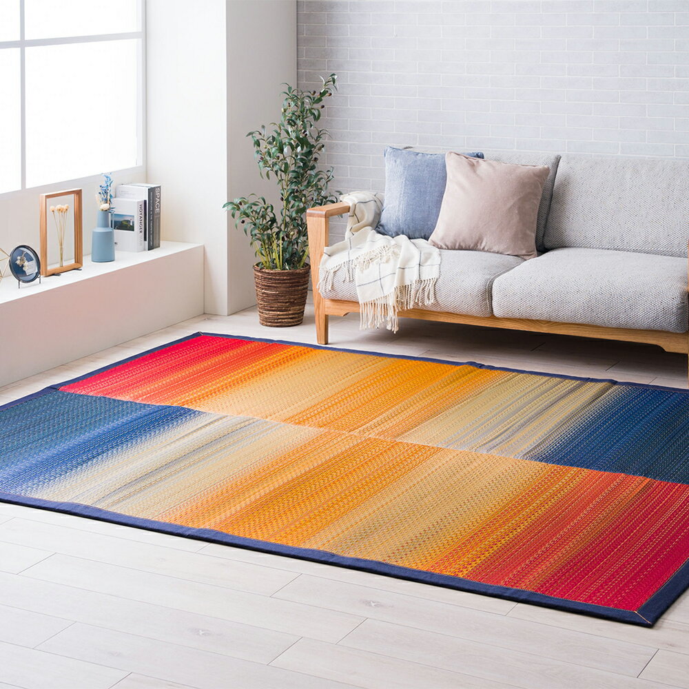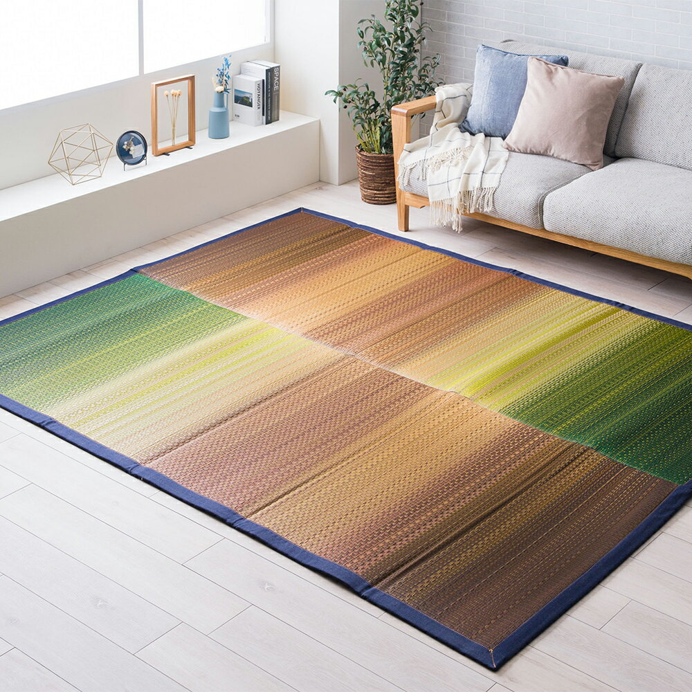 - 【ふるさと納税】<選べるカラー・サイズ>デニム×いぐさラグ Fジョイ 1枚 GN(グリーン) / RE(レッド) カーペット 国産い草 ござ 長方形 正方形 グラデーション インテリア 家具 日本製 福岡県 柳川市 送料無料