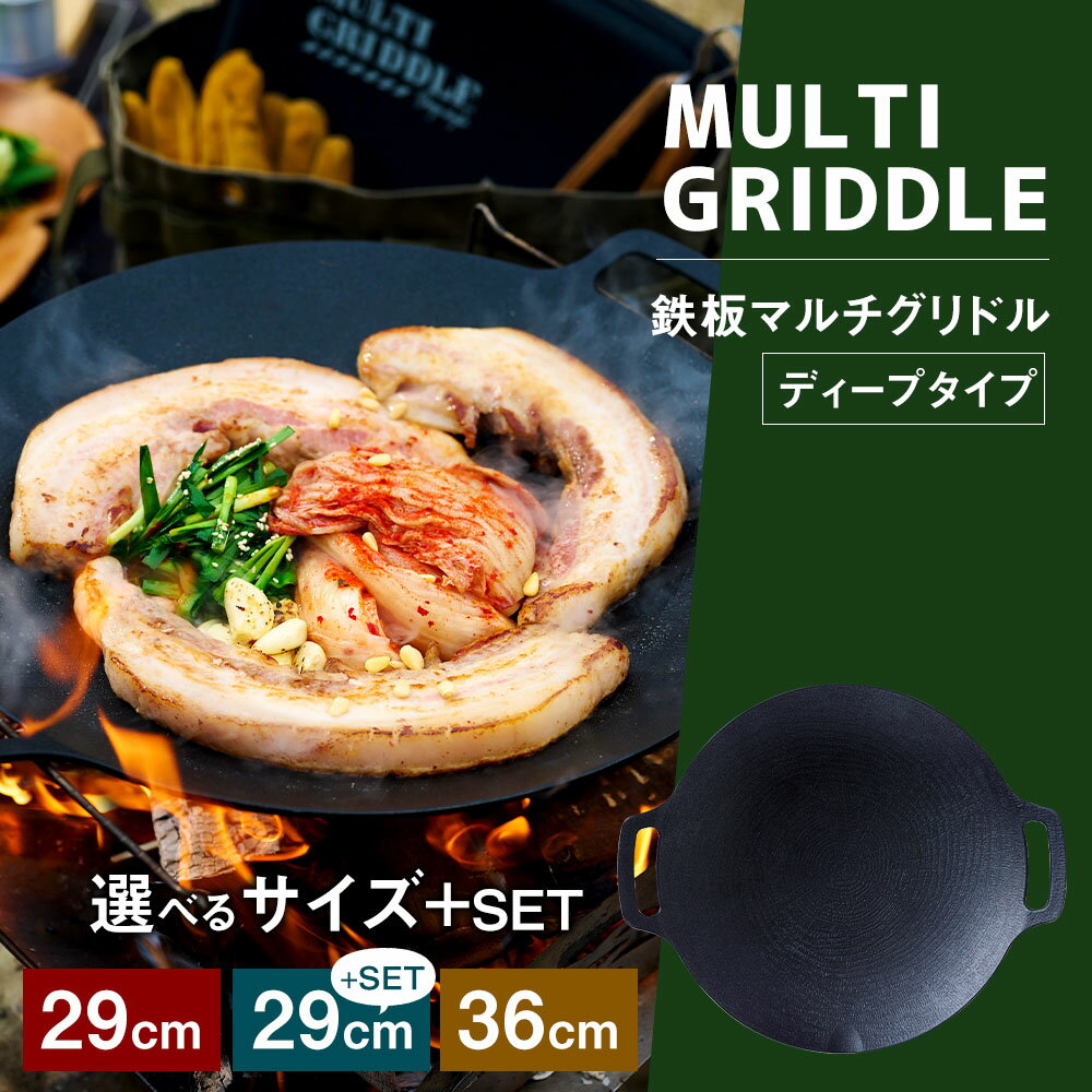- 【ふるさと納税】<選べるセット内容・サイズ>鉄板マルチグリドル ディープタイプ 29cm単品・29cmSET・36cm アルミニウム合金 フッ素コーティング キッチン用品 調理器具 キッチン フライパン キャンプ アウトドア グリドル ガス火 IH 食洗機 福岡県 太宰府市 送料無料