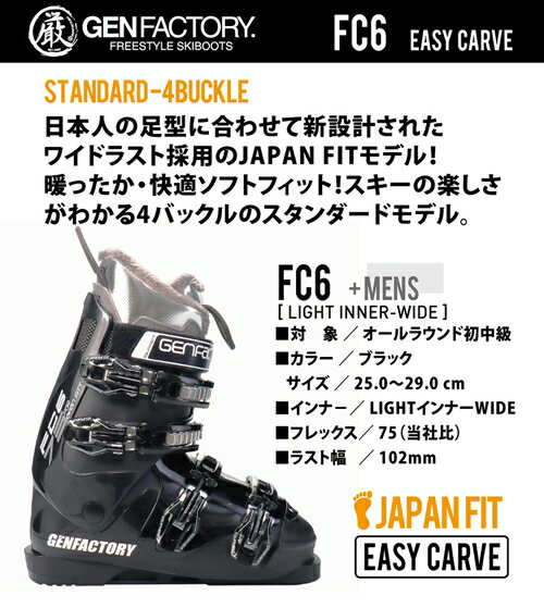 - 【ふるさと納税】GEN FC6 BLK 選べるサイズ カービング対応スキーブーツ / ジェイクリエイト スキー ワイドラスト スタンダードモデル ウィンタースポーツ 奈良県 田原本町