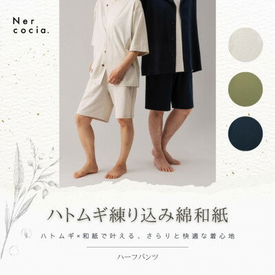 【ふるさと納税】富山県産ハトムギ練り込み綿和紙 ハーフパンツ ライトオリーブ Mサイズ【1680340】