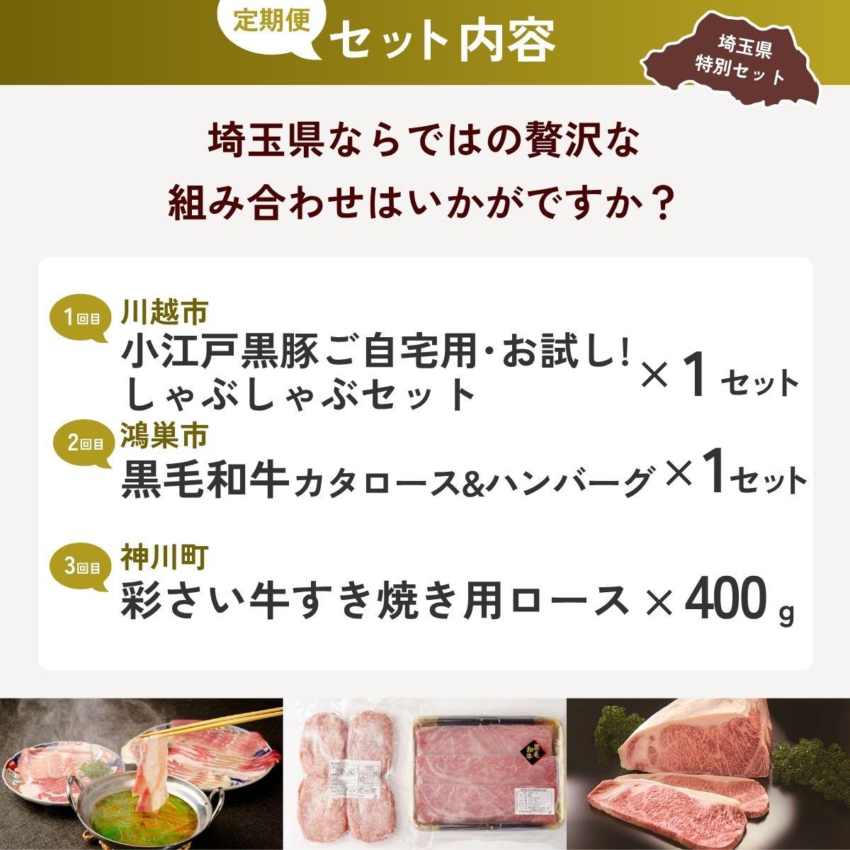 - 【ふるさと納税】用途いろいろお肉セットA 全3回定期便 | 牛肉 黒毛和牛 国産牛 ステーキ ハンバーグ 肩ロース カタロース ロース肉 ヒレ肉 スライス 彩さい牛 ブランド牛 サーロイン すきやき しゃぶしゃぶ ポークソテー とんかつ 埼玉県 埼玉県庁